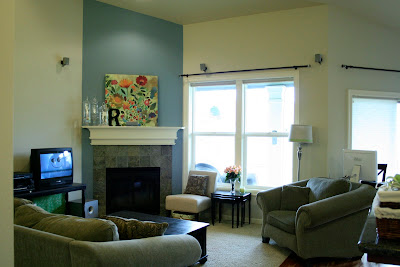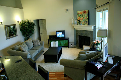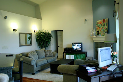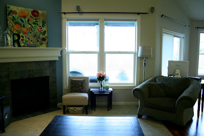 This is my family room. For my mom, since she keeps bugging me about my recent purchases and black paint craziness. And, for Layla, because I am dying to see if she can do something to help me cozy up my home.