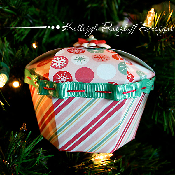 I had so much fun creating today’s “ornament”. It has been a while since I have played with my famous Cupcake Box Template, and I’m so glad this little challenge forced me to rediscover it! Seriously. What a cute template! This is one that I was super proud to create, since I’ve never seen anything like it, and it has caused quite a stir in the paper-crafting community. I originally created the Cupcake Box Template for the lovely participants of the Stampin’ Out Alzheimer’s fundraiser event back in May 2009. After the week long event, I popped it in my store at The Digichick, where it has continued to be one of my bestsellers. Thank you so much for loving this template as much as I do!!