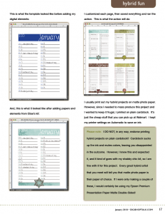 - The little greenish box in the article is my warning that you should NOT use regular old cardstock for hybrid projects . . . I get a little hoity-toity on that one. If you LIKE your digital/hybrid project or layout, then print it out on nice matte photo paper like Epson Premium Presentation Paper