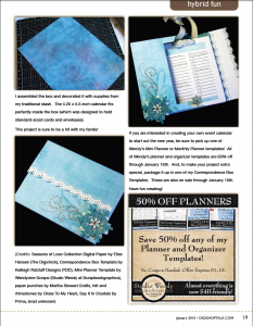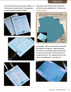 I was so delighted to be given the opportunity to write the hybrid article as a guest contributor this month! FINALLY! Wahoo! I already showed off the box I created for the article, but I didn’t show you what went inside it, did I?