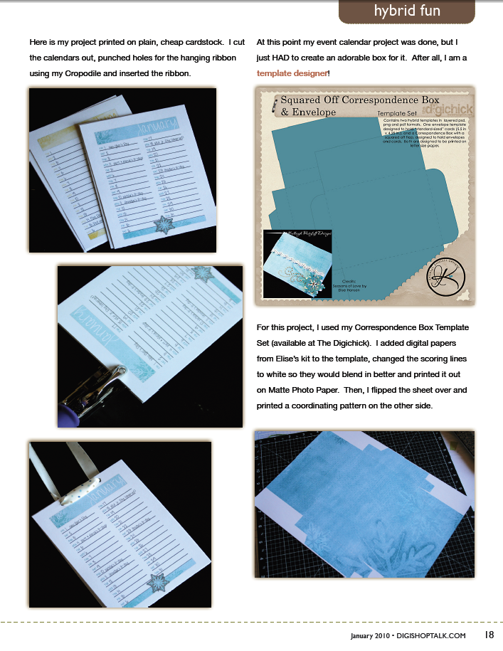 I created an event calendar using a template by Wendyzine Scraps (Scrapbookgraphics), and tucked it into one of my Correspondence Box Templates. So cute!