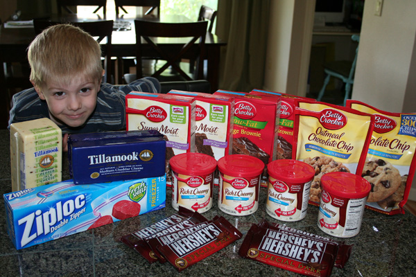 I know. I’m totally sick!! I went back to Safeway again this morning. However, in my defense, I knew I was going to be taking advantage of the Buy 2, Get 3 free promo on the cake mix, frosting, cookie mix and brownie mix. AND, I still needed to buy more cheese. So . . .