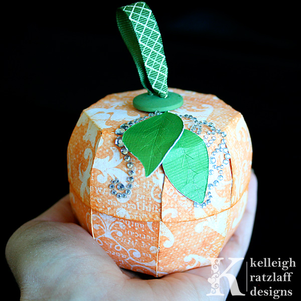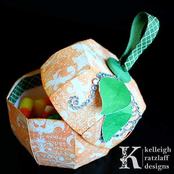 For my pumpkin, I covered the notch with a couple of leaves that I cut from my Autumn Leaves Template Set and Cutting Files, sized way down to fit my project. I am SO excited about these leaves! Talk about a versatile product! They would round out your Paper Flower perfectly, by the way!