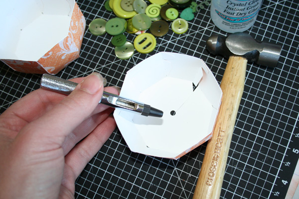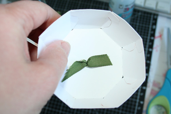 Tip #4 - I tried to slip the ribbon through the notch in the lid, but it made the “stem” off-center, so I used my eyelet setter to poke a hole in the middle of the lid.