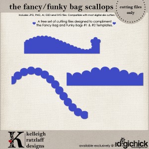 See those great little scalloped edges? I’ve seen a couple of gorgeous projects that you all have made with scallops along the edges of the flaps, and I totally copied you. AND, I decided that it would be cool to have a set of scalloped edge cutting files made specifically to go along the curve of my Fancy and Funky Bags. SO, I hooked you up with another freebie! Make sure you add it to your cart while you are checking out!
