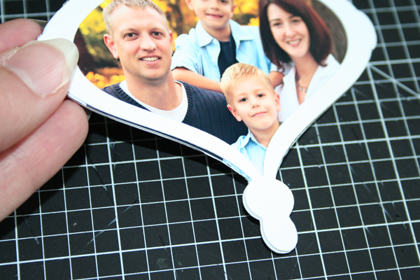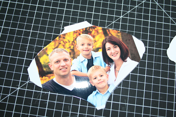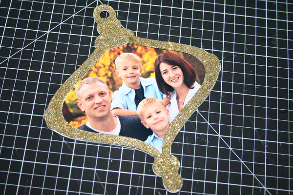 After I had my ornament shapes cut, I needed to cut out my photo to fit. First, I traced around the outside edge with a pen.