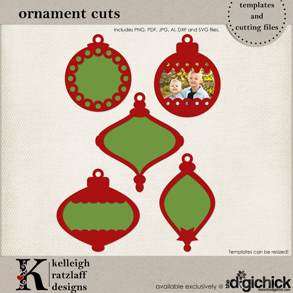 Next, cut out your ornament shapes. I used my Cricut and SCAL software to cut two of the top pieces and two of the bottom pieces. Don’t be intimidated by these shapes, though! You can totally cut them out with your craft knife or micro-tip scissors! Only one of the other gals whose projects I posted the other day has a digital cutter. The rest cut their ornaments by hand. To do that, you can either use the psd files to clip digital paper to the shapes and then cut, OR simply print the lines-only pdf version, with your regular printer, on to the traditional paper of your choice and then cut. There is a great tutorial on using digital templates in Photoshop at The Hybrid Chick, but you can do this with JUST your printer and the pdf, so don’t be intimidated just because I mentioned Photoshop!!