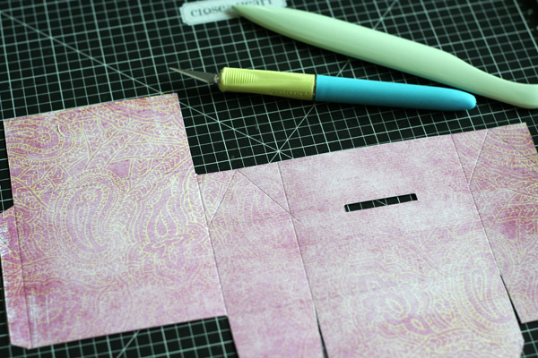 As you can see, I changed the color of the scoring lines to match the paper so they would not be as noticeable. Then, I just cut on the solid lines and scored on the dashed lines.
