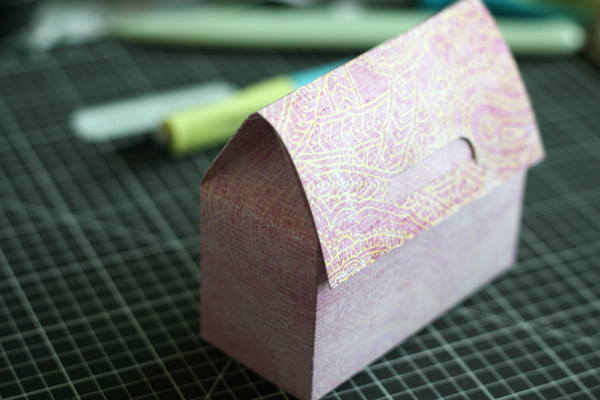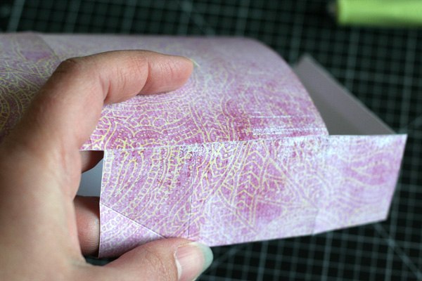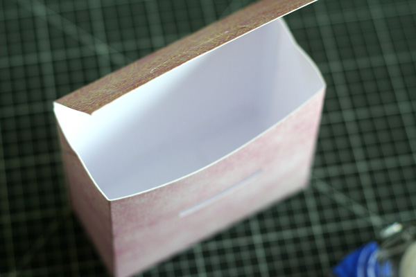 Then, I closed the bottom by adhering the flap to the inside of the bottom of the box.