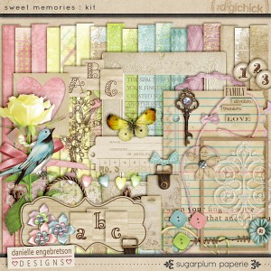 For my project, I chose digital paper from the Sweet Memories collaboration between Danielle Engebretson and Sugarplum Paperie. I LOVE this kit! So pretty!