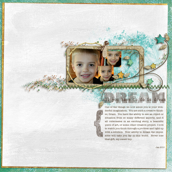 Ah, how I love that boy!! Everything on this layout is from Danielle Engebretson’s February Grab Bag.