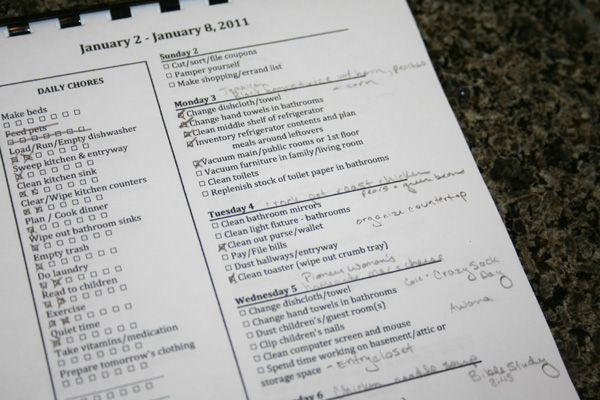 Remember last year when I decided to become a more motivated mom? I printed out a honkin’ calendar to keep me on track with my daily and weekly household chores so that my home wouldn’t fall apart. It really worked . . . when I followed it!! Then, I let the honkin’ calendar get buried under papers and my motivation slowly drained away. Out of sight, out of mind.
