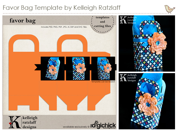 You’ll need to purchase the entire set complete with pdf files (to simply print onto patterned paper in your stash) and psd and png files if you are using a photo editor, however if you are only interested in the cutting files, go ahead and grab the Favor Bag Cutting Files.
