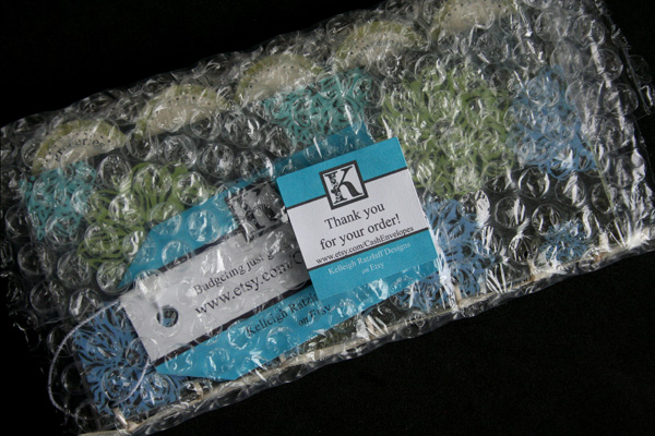 My “packaging” is pretty functional, but now it is more customized. Instead of just using tape to close the bubble wrap, I can use my custom sticker!