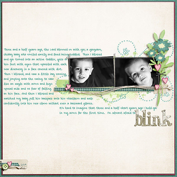 I actually created this page about Cole growing up last year sometime. It was published in an online magazine, so I didn’t post it in the galleries. I messed with the shadows after taking a shadows class by Peppermint. Awesome class!