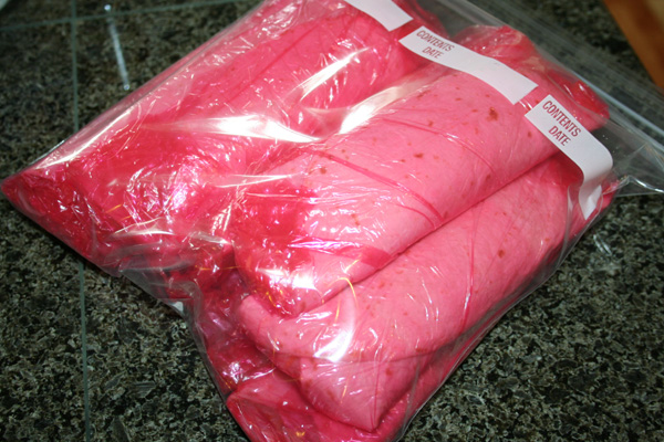 Cole and I ate 2 for lunch, so I am freezing 10, along with about 1.5 cups of leftover refried beans.