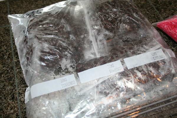 Dried beans (all varieties) are on sale for $1 for a 1lb bag at Safeway this week. I picked up 1 bag of pinto beans and one bag of black beans. Last night, I soaked the beans to be cooked up today while I attempted to do a little Once A Month Cooking.