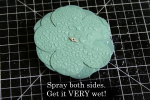Done! At this point, you can dress your flower up with some glimmer mist, glitter the edges of the petals, change out the brad or cover it with some bling!