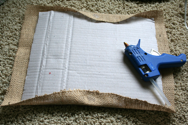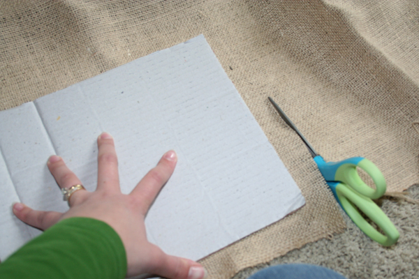 Then, I cut the burlap a little bit wider than the cardboard piece.
