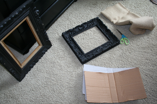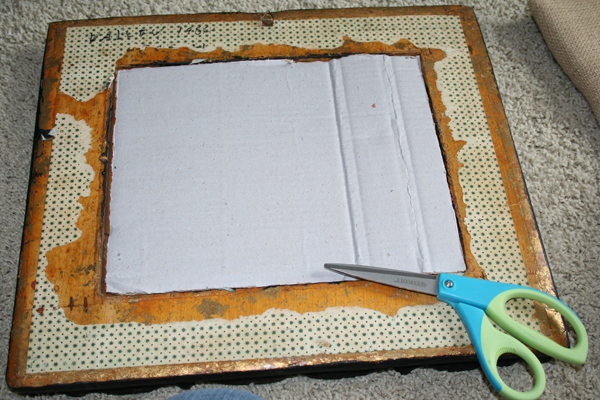 SO, I grabbed some spare cardboard and cut it to fit inside the frame.