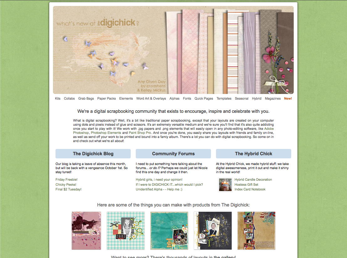 I’m so excited to see the new look at The Digichick! It’s VERY different from other online stores in the digital community, which is SO much fun! It’s still being tweaked, but the work in progress is still very beautiful! Go check it out!
