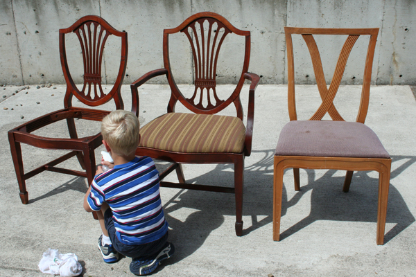 Here is the before picture of the two Craig’s list chairs (left) and the $1 garage-sale-from-last-week chair: