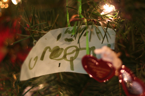 This is an “ornament” Grant made last year that somehow found itself in our ornament box. Hmmm . . .