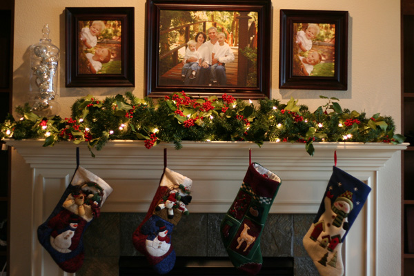 One day, I’d like to get some matching, totally classy, yet cozy stockings. For now, though, we’ll stick with these ones: The first two on the left were purchased our second Christmas together at Albertsons in Southern California. The ones on the right belong to the boys and were purchased at either Walmart or Target for each of their first Christmases. I wanted to wait to get all matchy-matchy until we were sure we were done having kids. At this point, we are pretty sure our family is complete, but want to stay open to God’s will. Therefore, I STILL haven’t purchased new stockings. I suppose that when I hit menopause I’ll decide it is time to buy the matching stockings. {sigh} Someone hit me over the head, please! I’m going to make it a goal to have new stockings by next Christmas, okay? Hold me to it.