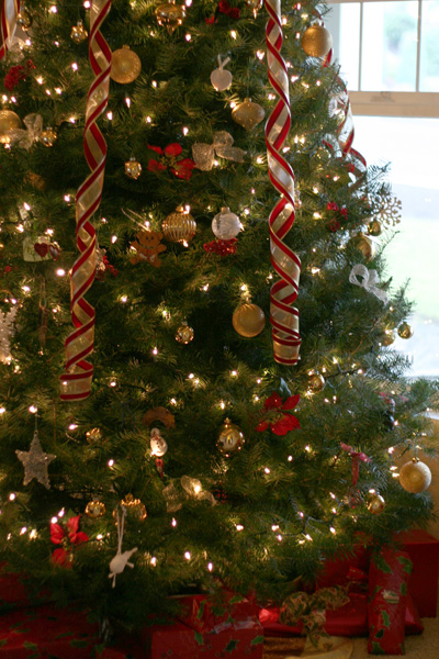 This tree is about 3 feet taller than most of our trees, so the ribbon doesn’t reach the bottom, but it still looks cool!