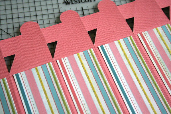 At this point, I flipped my template over and added some patterned paper by Close To My Heart to the front of each side panel.