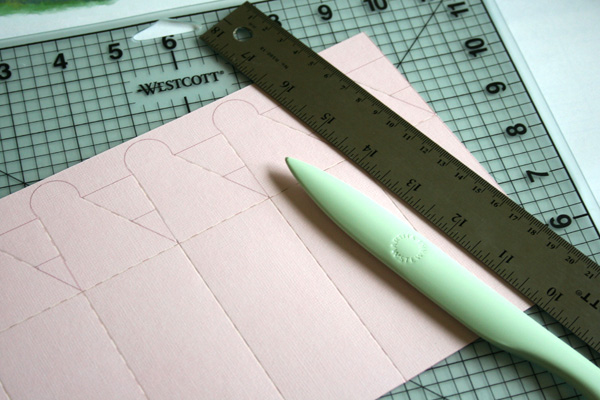 I printed on the back of my cardstock and then used my bone folder to score on the dashed lines. If you don’t have a bone folder, you can always use one of the tines on a fork or a dull knife and a straight edge.